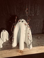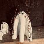 A large Monty Ghost entwined with wild bramble vines with delicately hand-placed miniature autumn leaves, casting a spell of eerie, woodland magic for the perfect spooky season feel. Comes with a soft, hidden light to bring his haunt to life.